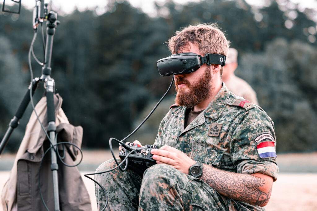 A Dutch soldier assigned to the 17th Light Armored BN conduct drone readiness training during Saber Junction 25 at the Grafenwöhr Training Area, Hohenfels Training Area, Joint Multinational Readiness Center, Germany, August. 30, 2025. Saber Junction 25 ensures that U.S., Allied and partner forces are prepared to act decisively in response to emerging threats, crises, or opportunities. (U.S. Army photo by Cpl. Leonard Beckett)